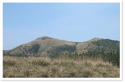 我が家のブルーベリー園から望んだ狐が丘です。 ここには昔、女神がいたとの神話が残されており、これには写ってはいませんが左側に牧神丘があり、そこに住む男の神様が会いに来ていたとのことです。 狐が丘には頂上に、スト−ンヘンジを思わせるような石群が、牧神丘には大阪城のたいこ石をを思わせるような巨石があり、神話と重なって何とも神秘的です。 200-400年昔までは薩摩藩の軍馬が悠々と駆け抜けていたはずです。