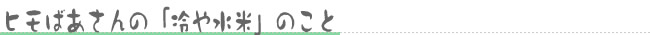 そんなヒモばあさんの「冷や水米」の紹介です。